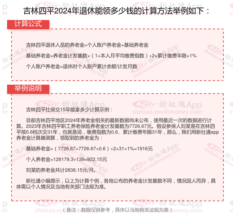 吉林四平社保交满15年能领多少钱?(在线计算举例说明)