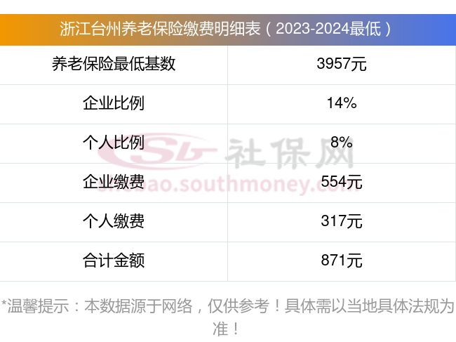浙江台州养老保险缴费基数2023-2024年最新标准(最低)一个月要交多少钱?举例说明
