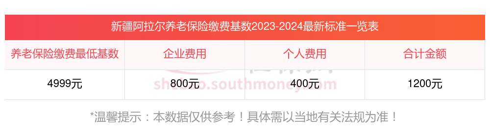 新疆阿拉尔养老保险缴费基数2023-2024年最新标准(最低)要交多少钱一个月?