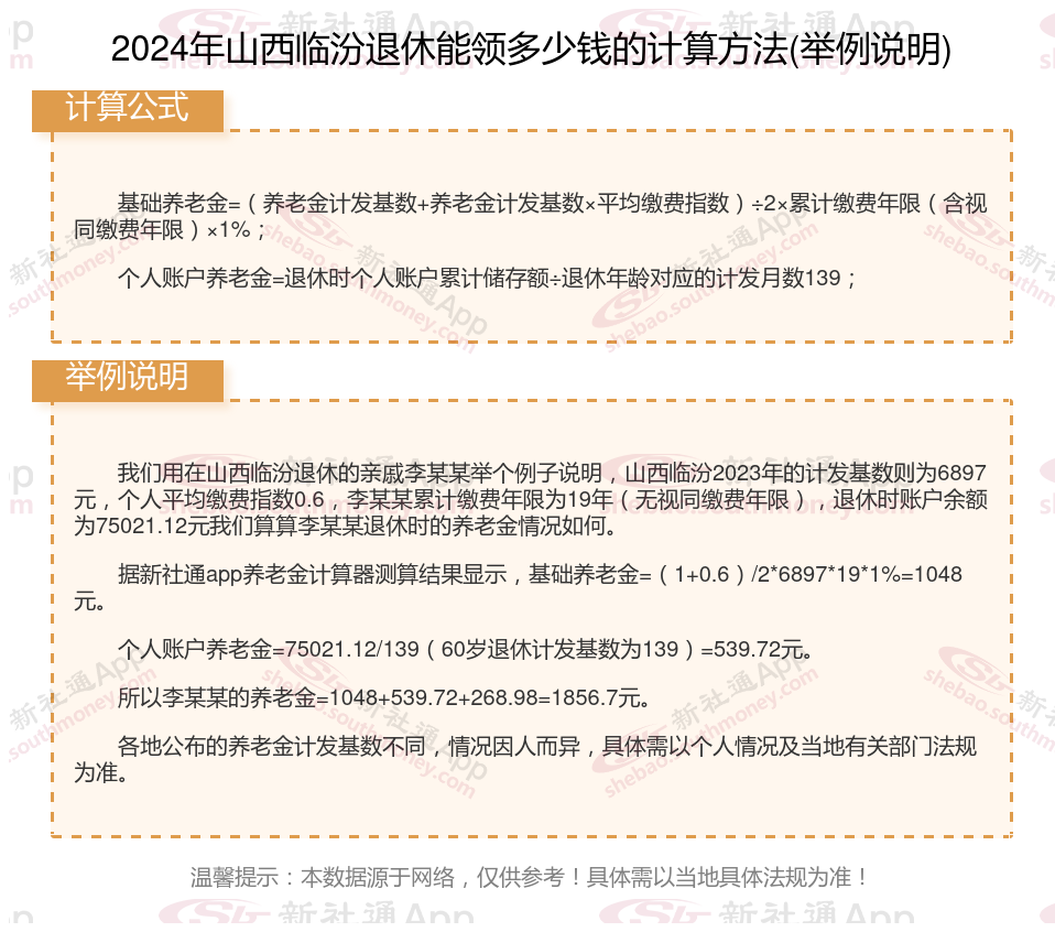 山西临汾社保退休能领多少钱?(在线计算举例说明)