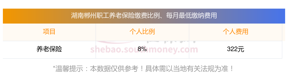 湖南郴州养老保险缴费基数2023-2024年最新标准(最低)