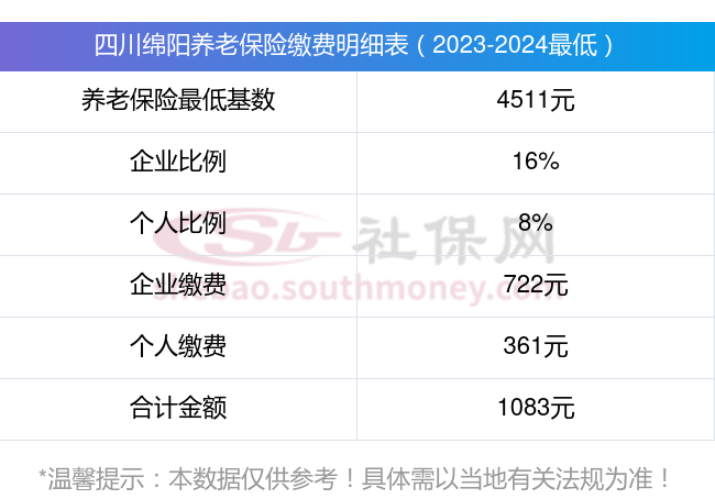 四川绵阳养老保险缴费标准2023-2024最新消息