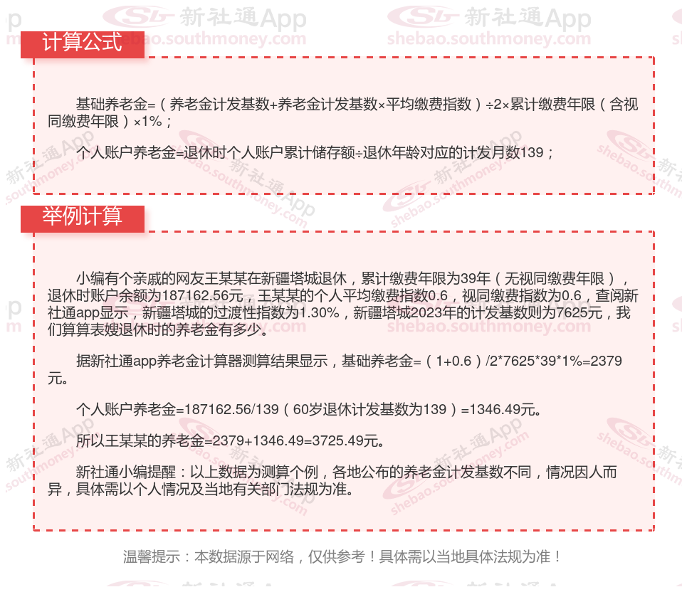 新疆塔城养老金计算公式2024年计算方法(在线计算器)