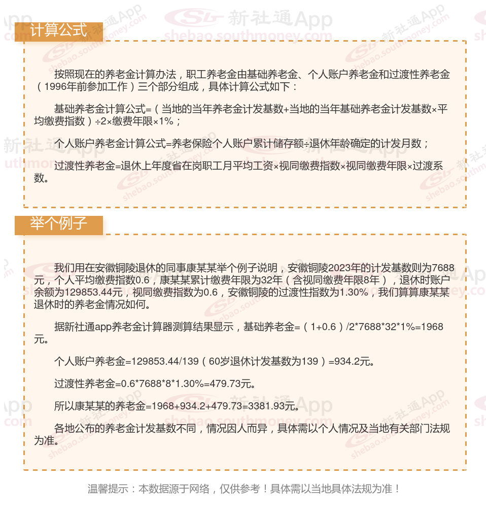 安徽铜陵养老金计算公式2024年计算方法(在线计算器)