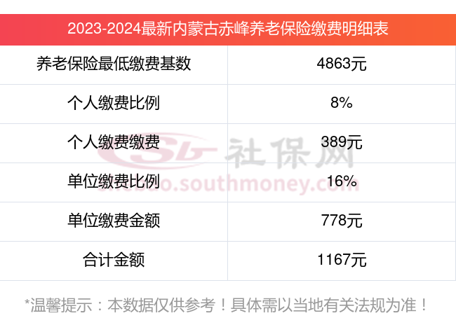 内蒙古赤峰养老保险缴费基数2023-2024年最新标准(最低)一个月要交多少钱?举例说明