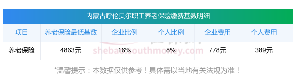 养老保险一个月要交多少钱?内蒙古呼伦贝尔缴费基数2023-2024年最新标准(最低)