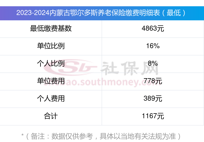 内蒙古鄂尔多斯养老保险缴费标准2023-2024最新消息