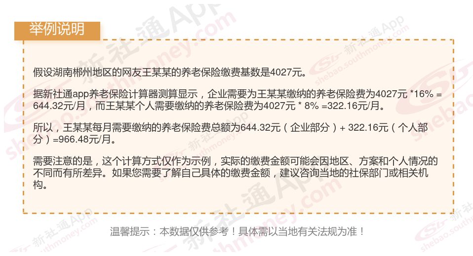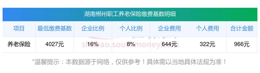 湖南郴州养老保险缴费基数2023-2024年最新标准(最低)要交多少钱一个月?