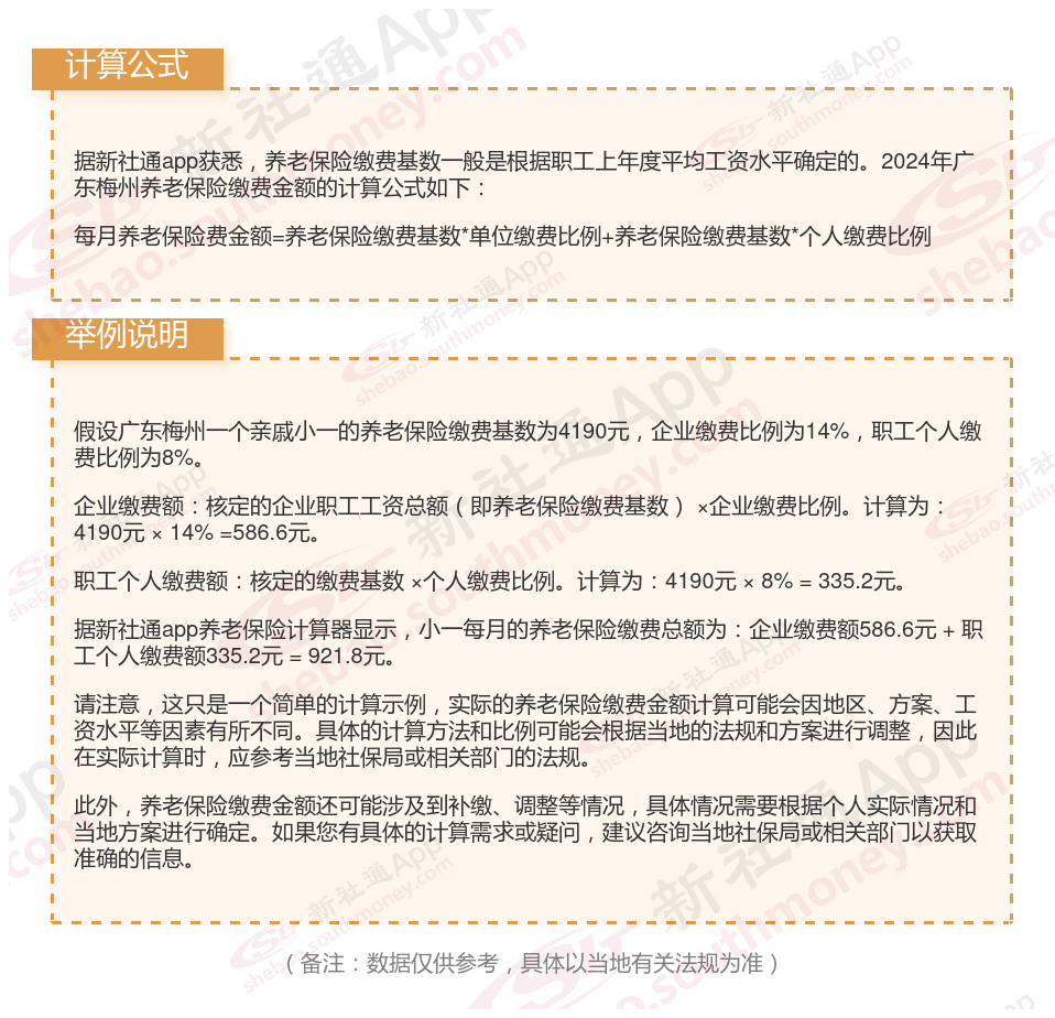 广东梅州养老保险缴费基数2023-2024最新标准,一个月要交多少钱?
