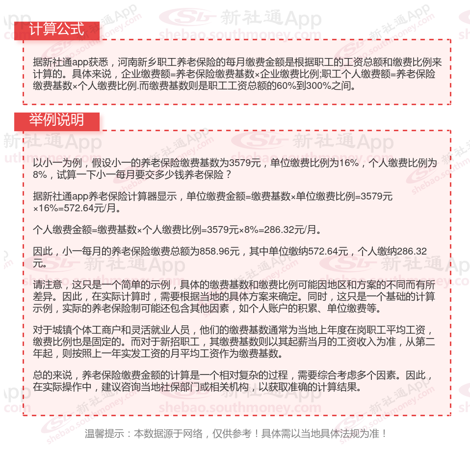 河南新乡养老保险缴费基数2023-2024年最新标准(最低)要交多少钱一个月?