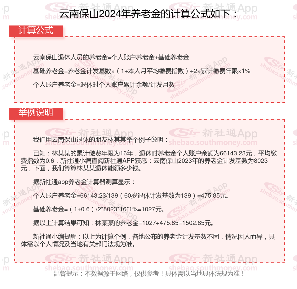 云南保山社保退休能领多少钱?(在线计算举例说明)