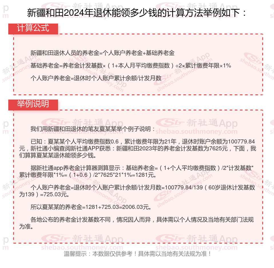 新疆和田社保退休能领多少钱?(在线计算举例说明)