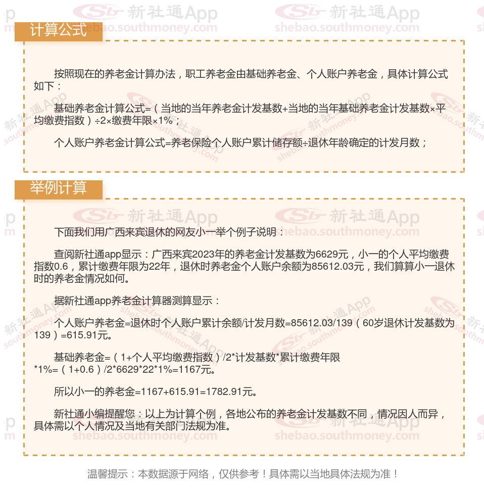 广西来宾养老金计算公式2024年最新计算器 社保退休能领多少钱?