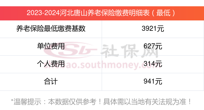 河北唐山养老保险缴费基数2023-2024年最新标准(最低)一个月要交多少钱?举例说明