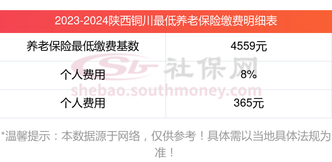 陕西铜川养老保险缴费基数2023-2024年最新标准(最低)要交多少钱一个月?