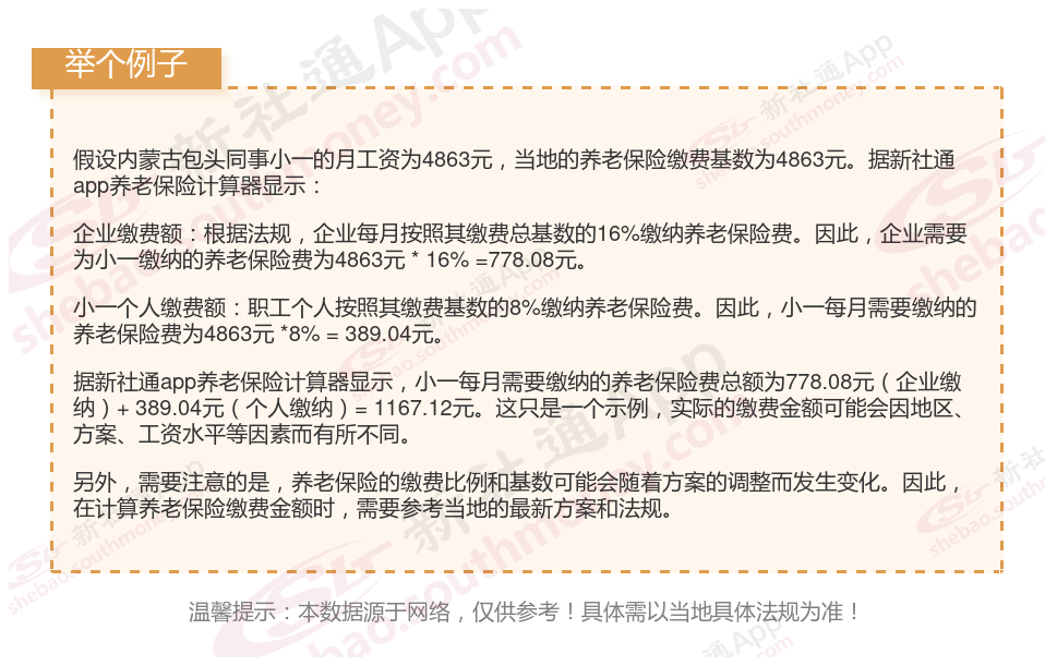 据新社通app显示,内蒙古包头企业职工养老保险的缴费基数为:4863元。