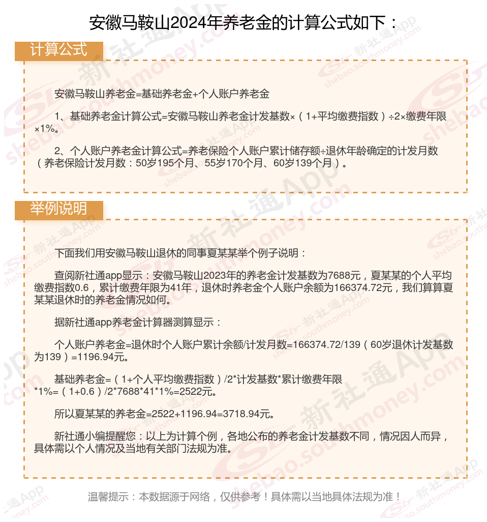 安徽马鞍山养老金计算公式2024年计算方法(在线计算器)