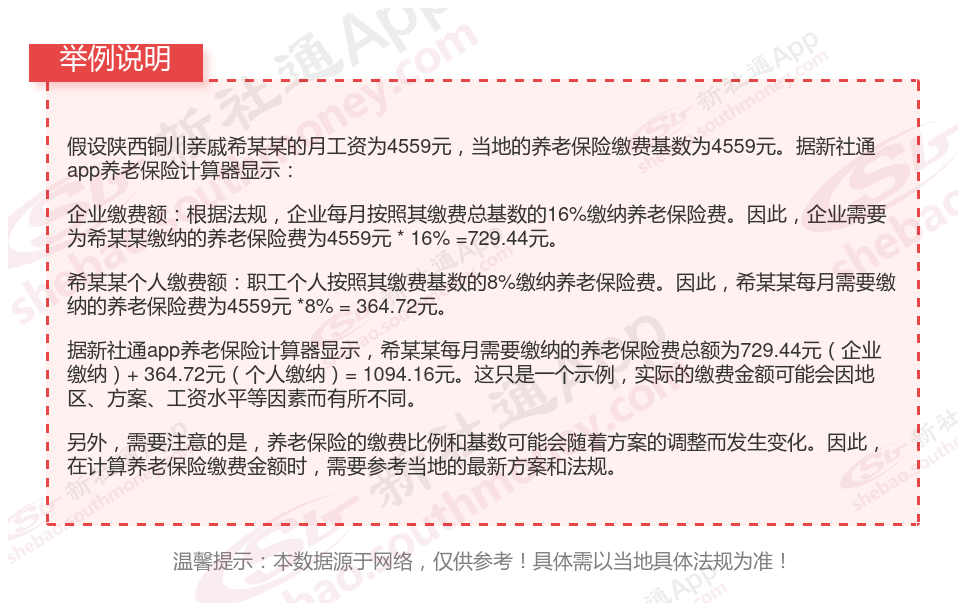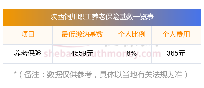 陕西铜川养老保险缴费基数2023-2024年最新标准(最低)要交多少钱一个月?