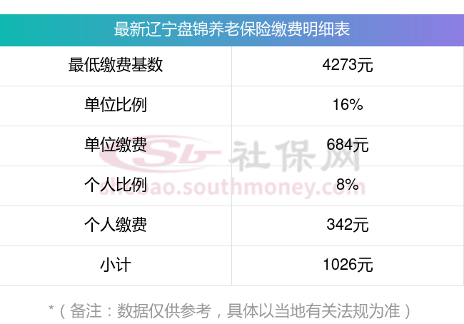 辽宁盘锦养老保险最低缴费基数:4273元;