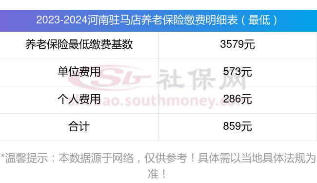 河南驻马店养老保险缴费基数2023-2024年最新标准(最低)