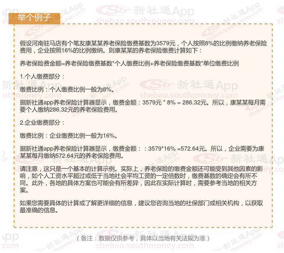 河南驻马店养老保险一个月要交多少钱?举例说明