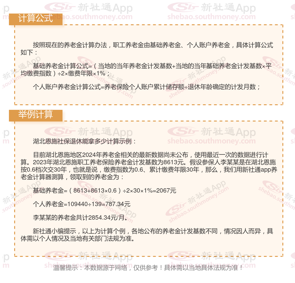 湖北恩施养老保险退休能领多少钱?(在线计算举例说明)