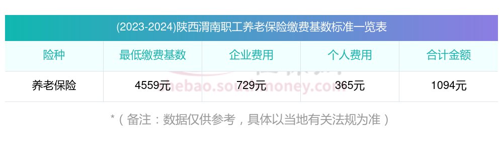 养老保险一个月要交多少钱?陕西渭南缴费基数2023-2024年最新标准(最低)