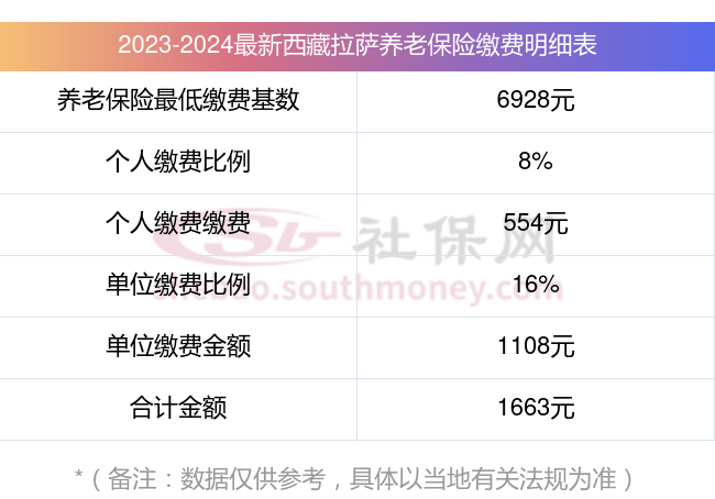 西藏拉萨养老保险缴费基数2023-2024年最新标准(最低)