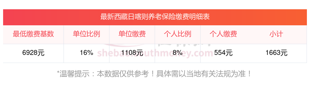 西藏日喀则养老保险缴费基数2023-2024年最新标准(最低)