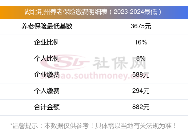 湖北荆州养老保险缴费基数2023-2024最新标准