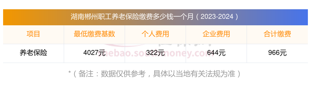 湖南郴州养老保险缴费基数2023年最新标准 一个月最低要交多少钱?举例说明