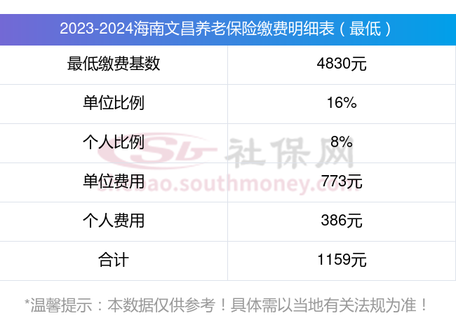 养老保险一个月要交多少钱?海南文昌缴费基数2023-2024年最新标准(最低)