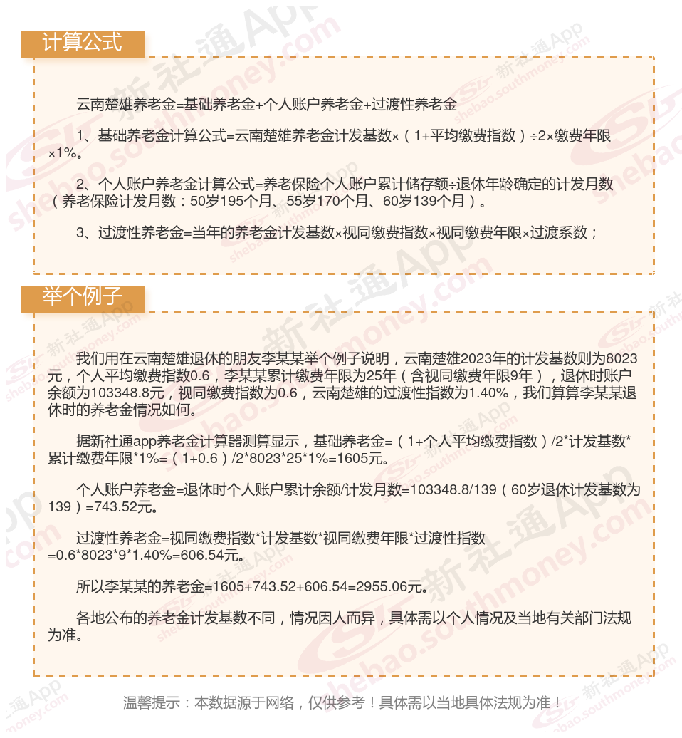 云南楚雄养老金计算公式2024年计算方法(在线计算器)