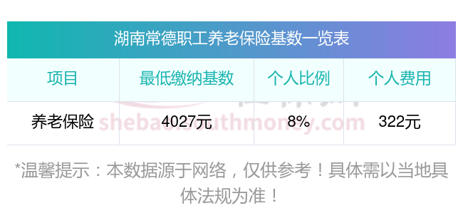 假设湖南常德某职工的养老保险缴费基数为4027元,湖南常德法规的养老保险缴费比例为:企业缴纳比例为16%,个人缴纳比例为8%。