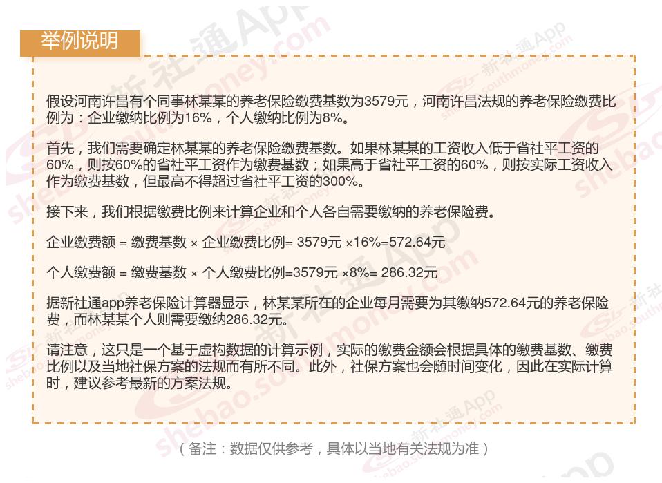 据新社通app显示,2023-2024年河南许昌职工养老保险的缴费标准是根据缴费基数来确定的: