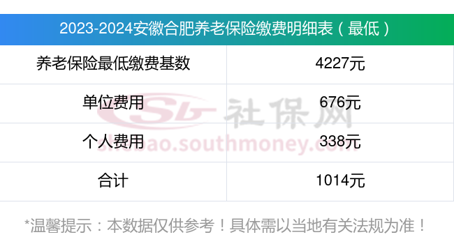 安徽合肥养老保险缴费基数2023-2024年最新标准(最低)