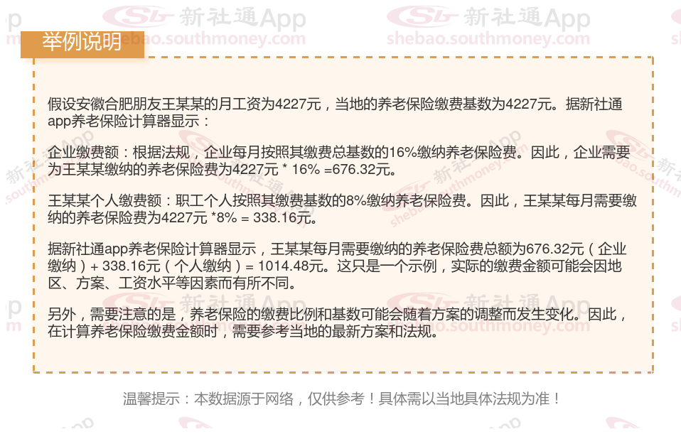 安徽合肥养老保险每月缴费金额的计算方法