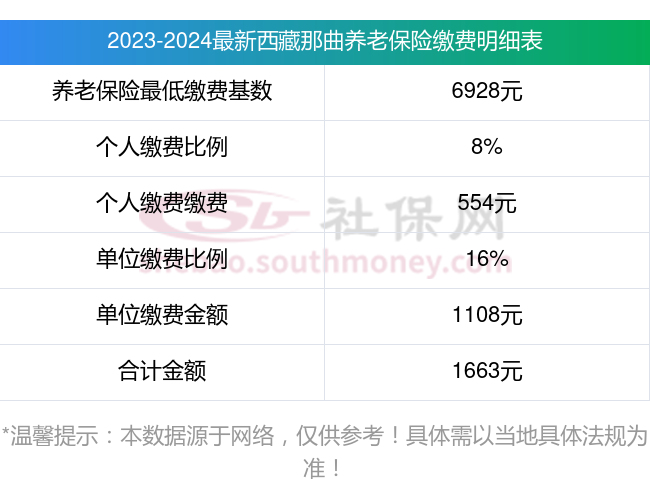 据新社通app获悉,西藏那曲养老保险缴费金额的计算涉及多个因素,包括缴费基数、缴费比例等,且各地的具体方案可能存在差异。以下是一个基于一般情况的养老保险缴费金额计算举例: