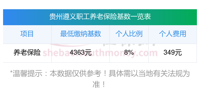据新社通app获悉,贵州遵义养老保险的缴费金额计算通常涉及缴费基数和缴费比例两个因素。以下是一个基于虚构数据的计算举例说明:
