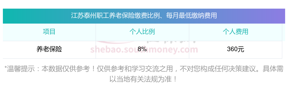 假设江苏泰州某地区的这个职工的养老保险缴费基数是4494元。