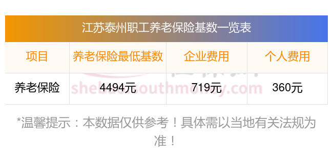 江苏泰州养老保险缴费基数2023-2024年最新标准(最低)