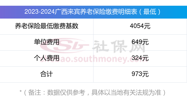 据新社通app获悉,职工养老保险是我国基本养老保险体系的重要组成部分,它采取的是单位与个人共同缴费的机制。一般而言,个人的缴费比例为8%。在常规情况下,单位所缴纳的养老保险费用会直接汇入养老保险统筹基金账户中,用于整个养老保险体系的资金积累和运作。那么,广西来宾养老保险2023-2024年缴费标准是多少?下面随新社通app小编一起来看看详情吧。