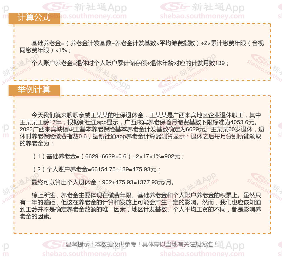 广西来宾养老金计算公式2024年计算方法(在线计算器)