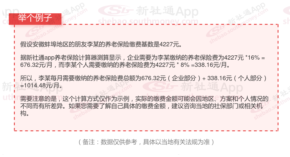 据新社通app显示,安徽蚌埠职工养老保险最低缴费基数为:4227元;单位和个人的缴费比例分别为:16%、8%;