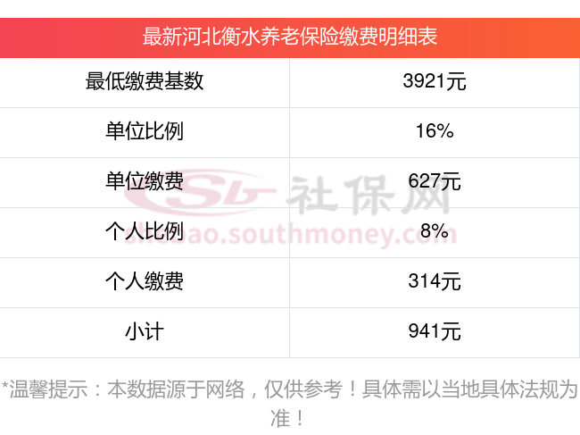 据新社通app获悉,2024年河北衡水养老保险缴费金额的计算公式如下: