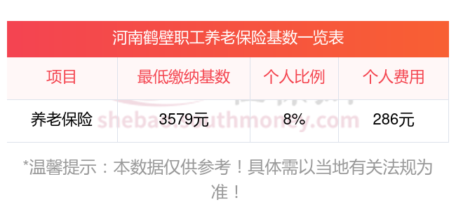 假设河南鹤壁某地区的这个职工的养老保险缴费基数是3579元。