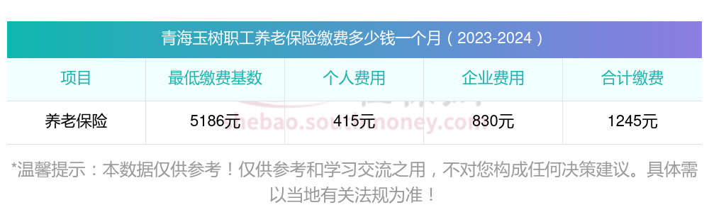 青海玉树养老保险缴费基数2023-2024年最新标准(最低)一个月要交多少钱?举例说明