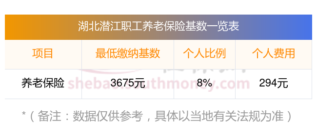 湖北潜江养老保险缴费基数2023-2024最新标准如下