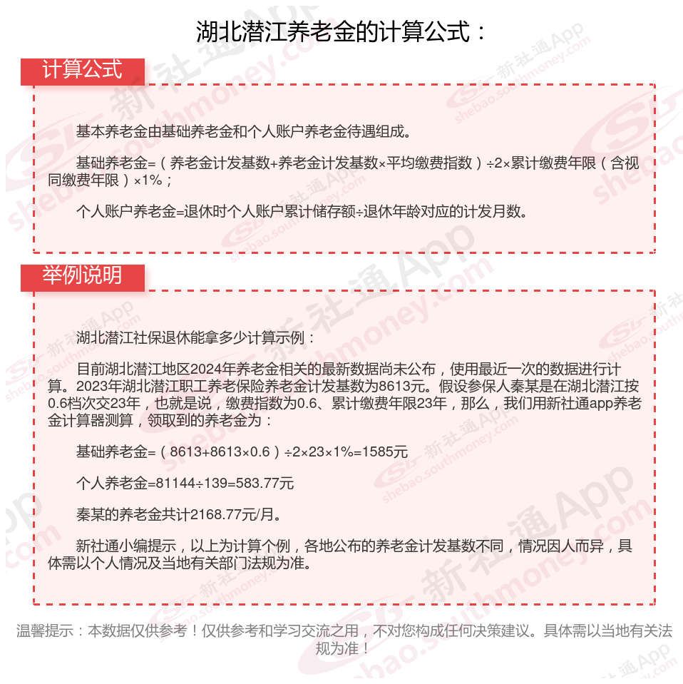 湖北潜江社保退休能领多少钱?(在线计算举例说明)