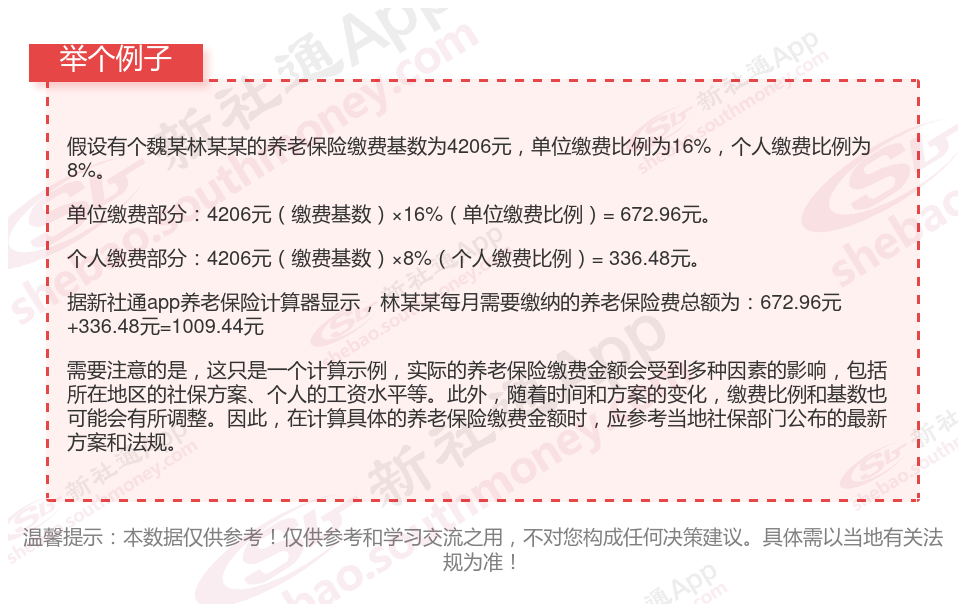 缴费基数下限暂按不低于4206元/月执行。按照单位16%+个人8%的缴费费率,单位和个人养老保险缴费金额分别不低于672.96元/月、不低于336.48元/月。